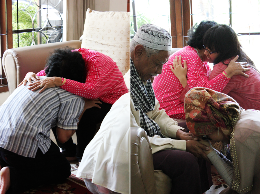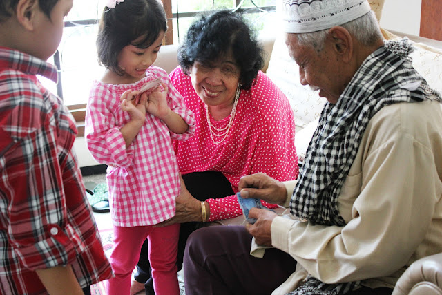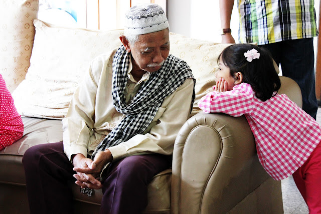 We started off by ever so beautifully decorating the dining table with food and seasonings as well as sauces. As the ladies did this, the men arranged the living room to make it wider. The next event is why. Our grandparents (Titi and Kakung) sat on the sofa, dressed in clean and neat clothes. They were ready for us, their children and grandchildren, to ask for forgiveness and vice versa. This usually goes on for around ½ to 1 hour and not without a few tears. Afterwards, Titi and Kakung would ask forgiveness from one another. Such a sweet sight! I love seeing my grandparents all lovey dovey and happy. Then we proceeded by Kakung giving out Eid bonuses to his grandchildren – this time, minus my oldest cousin, who’s had an income of her own. We then formed a circle around the fortunately circular dining table, except for my youngest cousins, and followed Kakung’s lead in praying before we dug in.