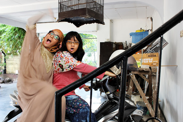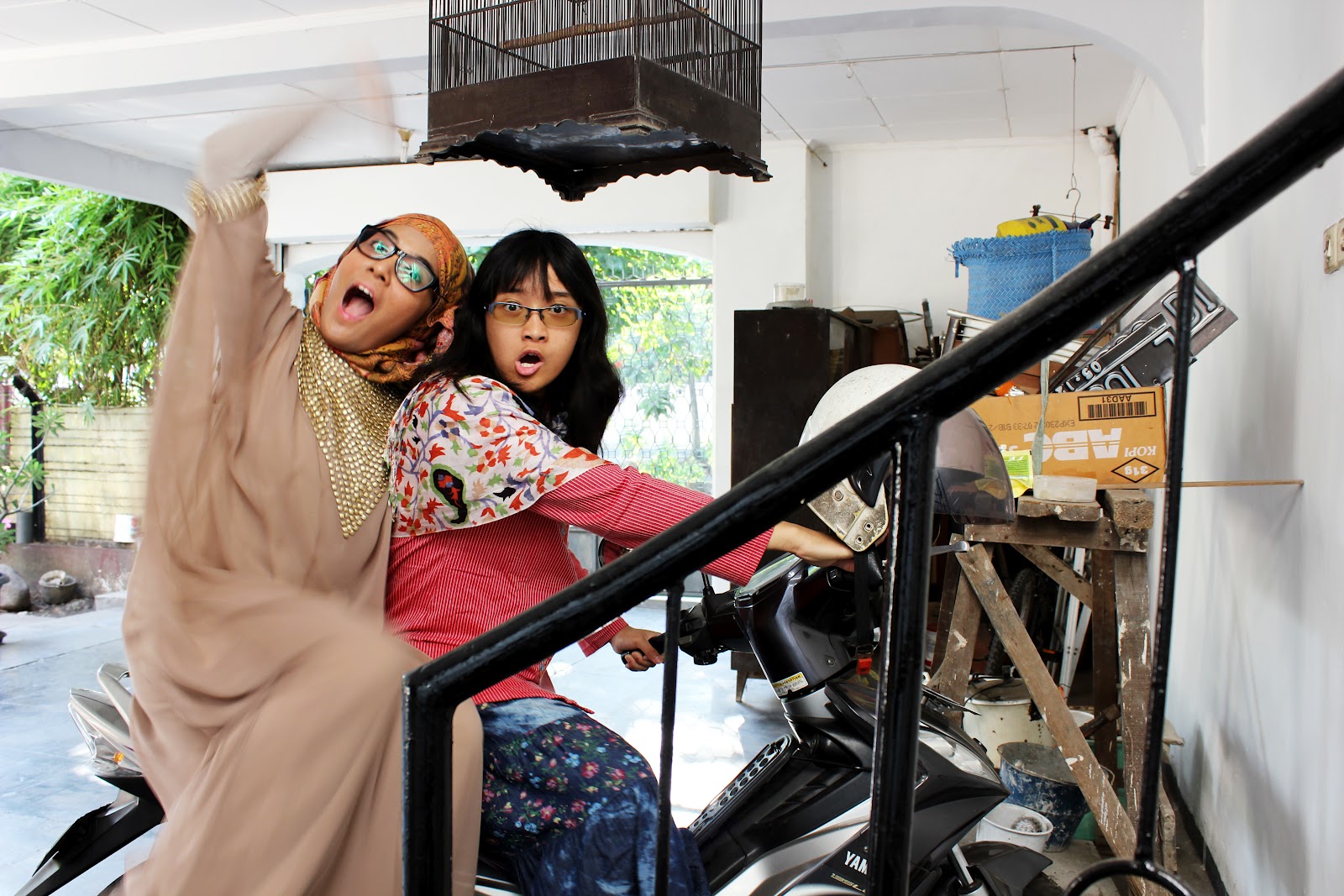 As we waited for the cousins and uncles and aunts to come, my sister and I snapped these photos of what we were wearing throughout the day. This is to show: A.) Our outfits of the day – as sister style, finally! – and B.) How antique and refreshing our grandparents’ house is. It has gone through some changes throughout the years, of course, but little elements will still stay there. Exhibit A: this gigantic birdcage. Kakung loves to collect birds. I have seen all kinds of birds that he’s kept. Even now, it’s another species. Exhibit B: this motor Vespa. I don’t even know anymore who it belonged to but it’s been hanging out there for many years. It’s not useable anymore but I still love its aesthetic element. Hence, it appearing here.