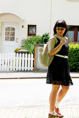 Atmosphere blazer (as top) // Esprit lacey black dress // Tally Weijl belt // Mom’s backpack // Primark socks (gifted) // Vintage penny loafers