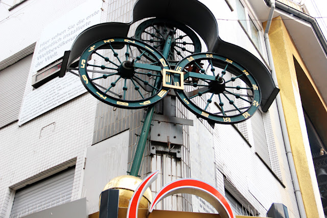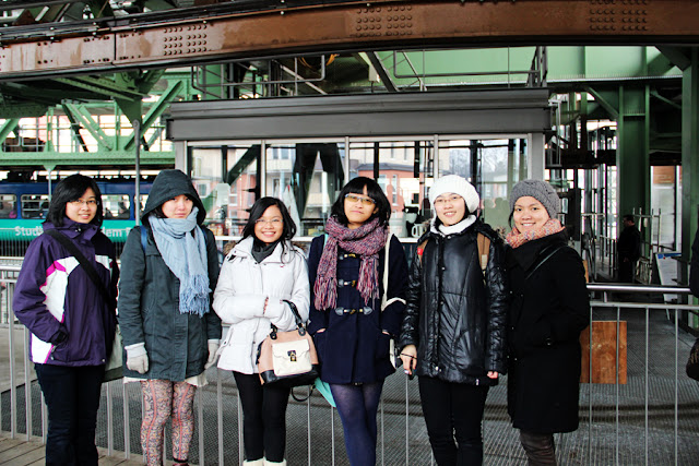 This day was freezing cold! Firu, Saku-chan and I took off from Mülheim just in time for lunch. We went to lunch and to the flea market. It started to snow but the flea market was still going on. On Easter too! We all snatched up something for ourselves. I got myself a pretty long pleated green skirt, Saku-chan got herself a small retro ’70s jar/chilli container while Firu gladly purchased a brand new water heater. Afterwards we headed to the main train station to meet up with Iva and her friends. We went there by the monorail. The kick is, the track runs over the train instead of under it, leaving the train hanging whenever it comes to a stop, thus the name – “schweben” means hang. It got me a little dizzy.