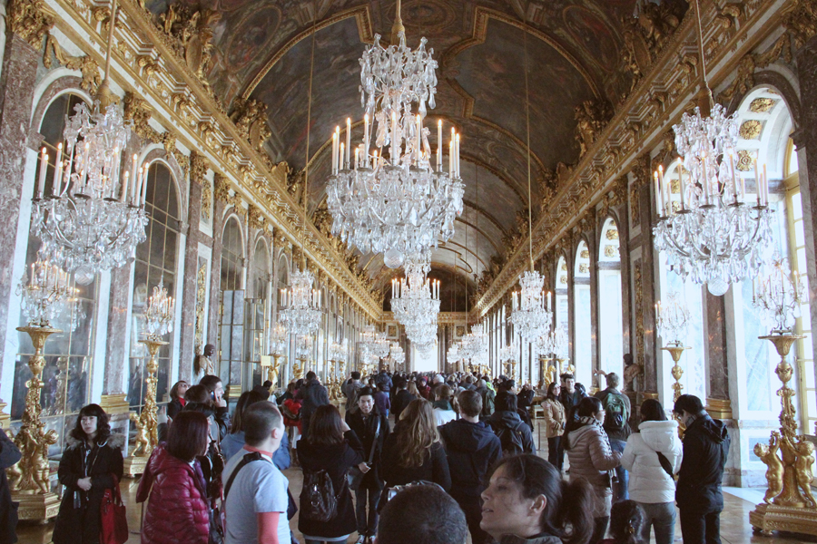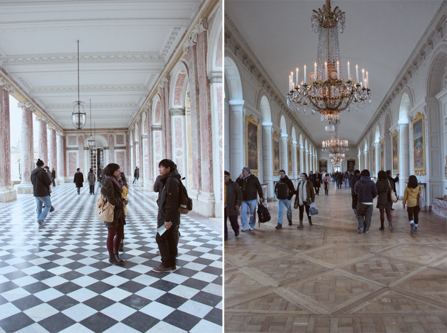 First we were taken on an unguided tour (the line to the audio guides took forever) through the history of the palace – who lived there when, who their kids were, how they turned up to be – in a series of paintings, sculptures and other artworks. My favourite part of the whole palace was the thick Rococo style, covering the walls, the furniture, the fireplace, everything. I’ve been obsessed with Rococo for a long time so I couldn’t help but to touch it. The Hall of Mirrors made me swoon as well with its majestic frescos on the ceiling, chandeliers hanging beautifully and mirrors plus gold lining the hallway. It all pretty much gave me a clear image of life way back when.