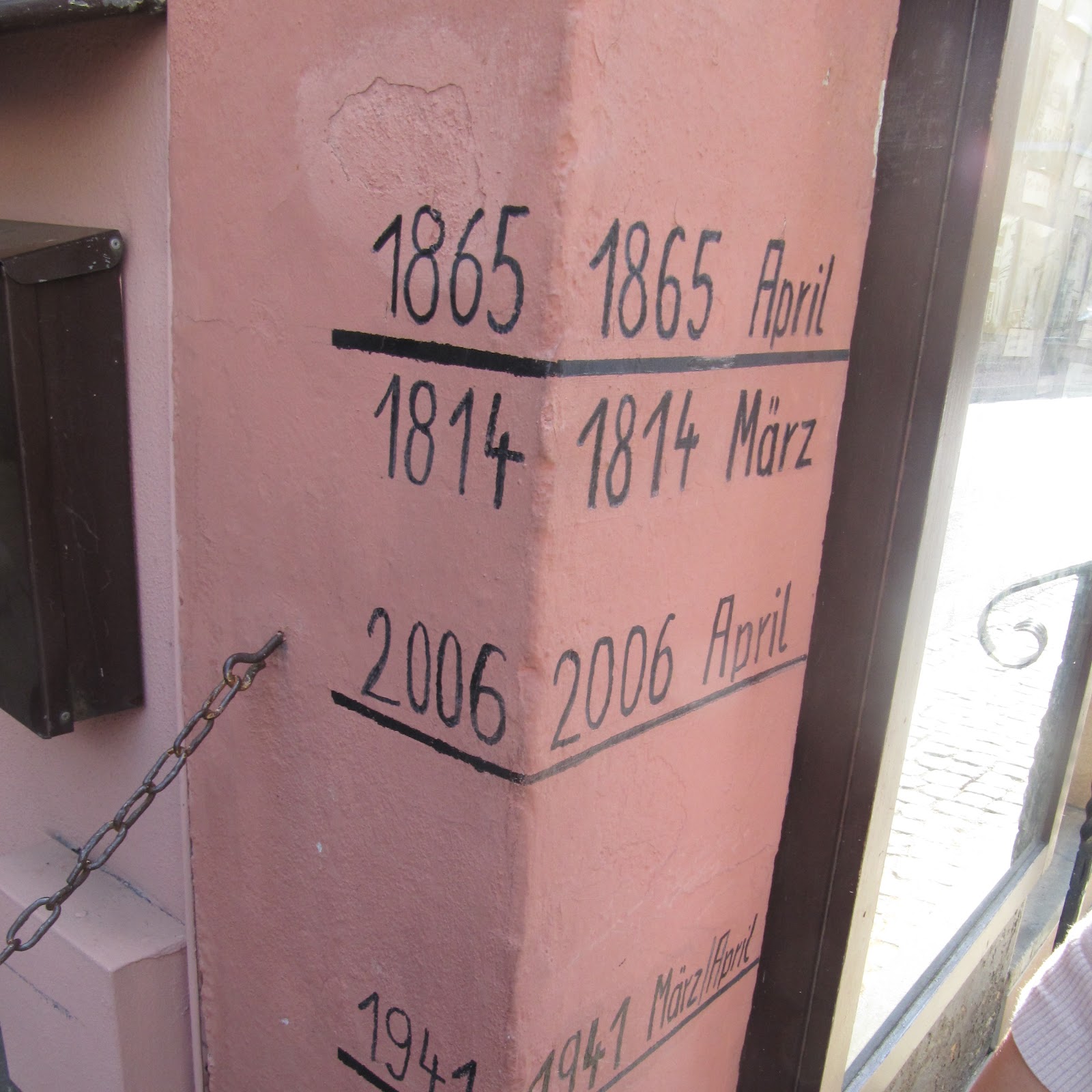 Whilst walking all the way to the ferry port, the guide took us into town in Bad Schandau and showed us a house that recorded all the floods that had happened since the 19th century in Saxon Switzerland. The river overflowed once in a while and it created floods. The worst was in 2002, where the water level reached the second floor of every building. The electricity went out for four weeks then. Such an impact. Our feet were almost ready to gave up as we finally reached the port and waited for the ferry to come and take us to the train station. We boarded the train and started our trip back. We said goodbye to the guide and Peter as they got off in Pirna.