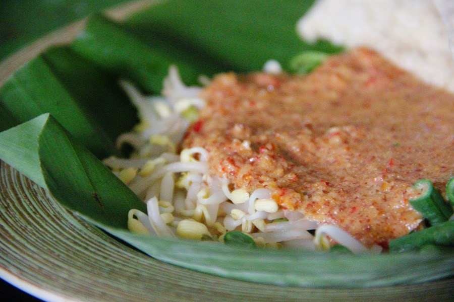 Tips: Use pestle and mortar instead of a blender to purée for best quality and taste. Steam instead of boil to keep all the vitamins in. Add the hot water little to little to avoid the sauce from becoming too runny. You can eat it with kerupuk karak (as pictured above) and/or rice, if you feel the need for more carbs. Green beans contain vitamin D, spinach contains iron, bean sprouts contain vitamin A, C and carbohydrate and the peanuts contain protein. With such healthy nutritions, who says you won’t be okay without meat? Lass es euch schmecken!