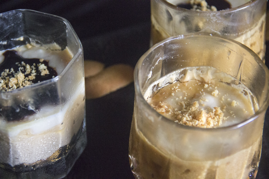 Tips: For this recipe I used lady fingers that my Stepmom baked beforehand but I think it’s easy to find anywhere. Otherwise, graham crackers will also work perfectly well for this. This recipe will fit ideally into a small mason jar, but if you don’t have one, using glasses like I did is not a problem. If the chocolate has difficulty melting, feel free to add milk to hasten the process. To make the dish even prettier, adding chocolate/maple syrup or honey is an option—plus it adds a lovely taste too! Lass es euch schmecken!