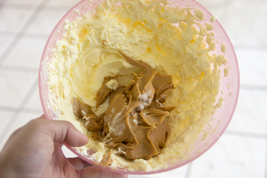 - Add in the peanut butter and beat the mixture for 1-2 minutes