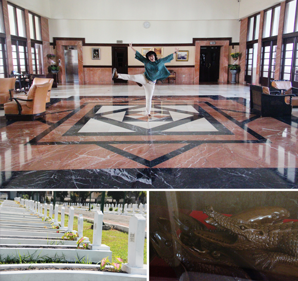 The last place we visited that day was the Town Hall, which is where Surabaya’s modern hero Ibu Risma, the mayor, works from Monday to Friday. At first we weren’t sure if we could enter the grounds, let alone the building on that day. It was a Saturday so I suppose we wouldn’t be in anyone’s way. When we arrived there, we met a rickshaw puller who had to take a couple Japanese students on a tour all over town all day. While the students were busy taking pictures of flowers – which is all they seemed to care about -, we went into the building and took a look around. We had a fun photoshoot, where we rearranged some of the furnitures. I love the marble floor and the colonial furniture from mahogany. I hope Bu Risma didn’t notice what we did nor be too shocked if she did. Our hero-themed tour is just beginning, so watch this space!