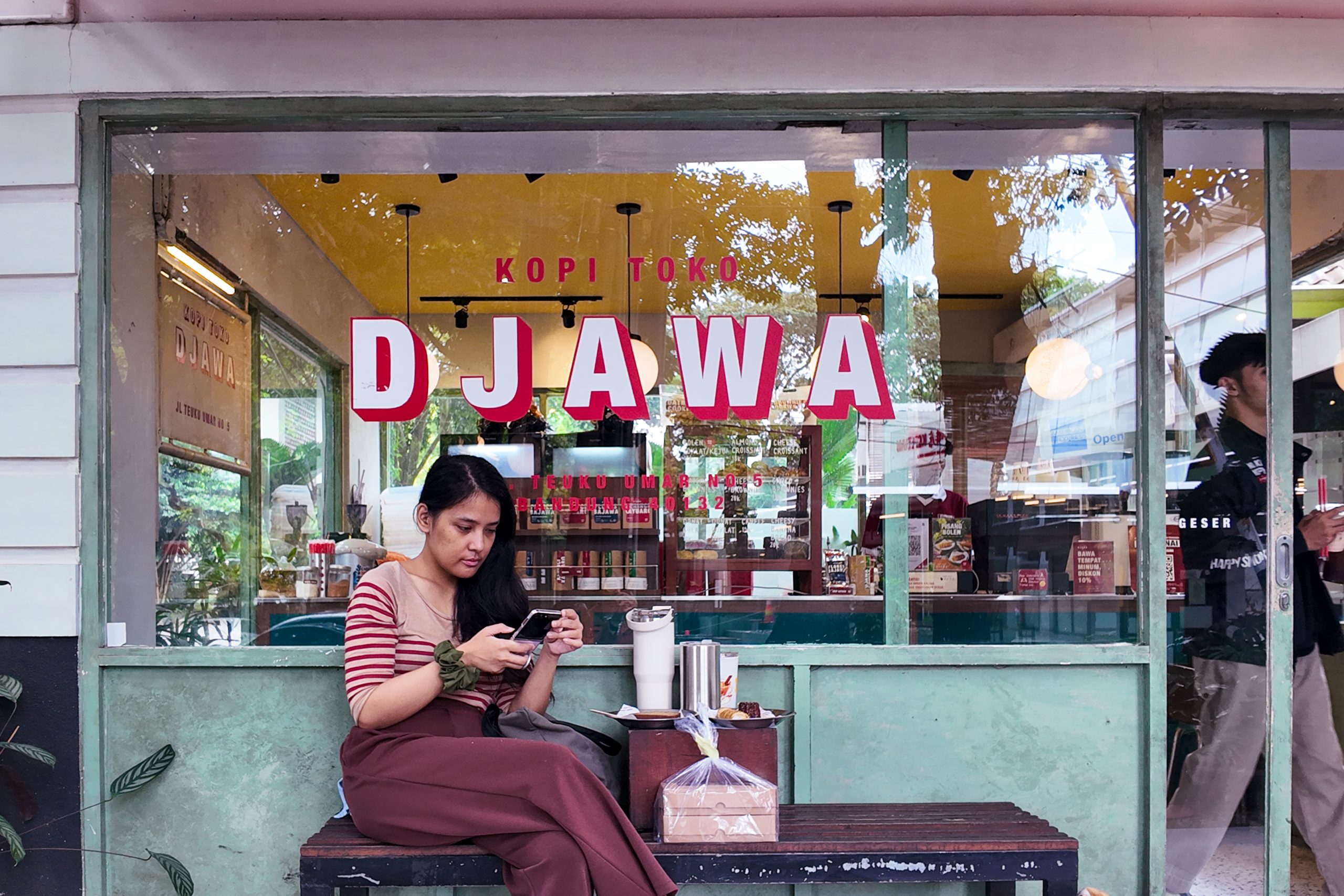 No trip to Bandung would ever be complete without hanging out with my sister—which is why I dedicated my second day for her. My phone battery was pretty much shot, so my top priority of the day was to replace it. My sister is such a good sport, that she didn’t mind keeping me company while I run this errand. But first, of course, coffee. Call me basic, call me a tourist—but Kopi Toko Djawa is my favourite Bandung hang out spot, specifically the Teuku Umar branch. For years prior—around the pandemic era—I’ve been eyeing this little place on social media and was dying to hang out here, and finally last year I did. Somehow it became our go-to hangout spot while I’m in town. Such a nice, luscious space with great ambience to people watch.