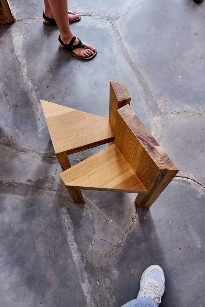 Some works from the exhibition stood out, such as this lopsided chair titled ‘Partial Support’, which portrays this two-part chair that can be assembled in a couple different ways to unite as one chair. The twist is that each part of this chair has one beneficial feature that offers comfort, while the other features can result in discomfort. For instance, one part of the chair may have a sturdy plane to sit on, while its back post may be uncomfortable—while the other part may have it the exact opposite.