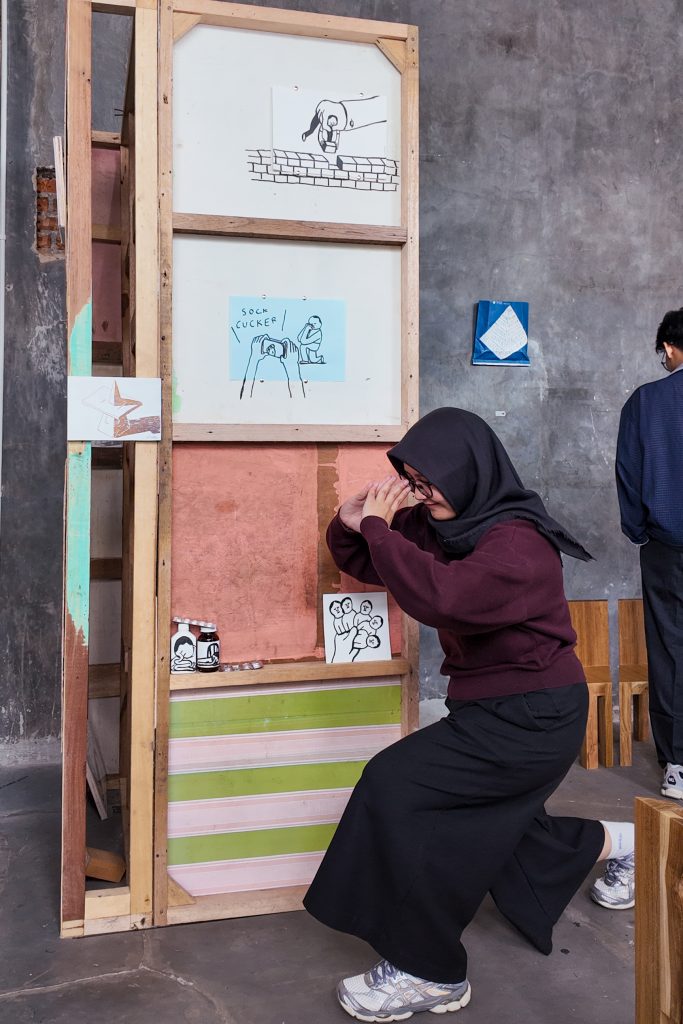 I also really love and enjoy these little nooks where you have to put your head all the way in to enjoy the artwork altogether. The nook contains little illustrations by Fandy, portraying the many different facets of his personality and experiences—with snippets of his current home as well, portraying the imperfections of his humble abode. Most of the works displayed at the exhibition are spread out across the space, so you’ve got to have a keen eye to capture each and every one of them. There are a lot of easter eggs being strewn about.