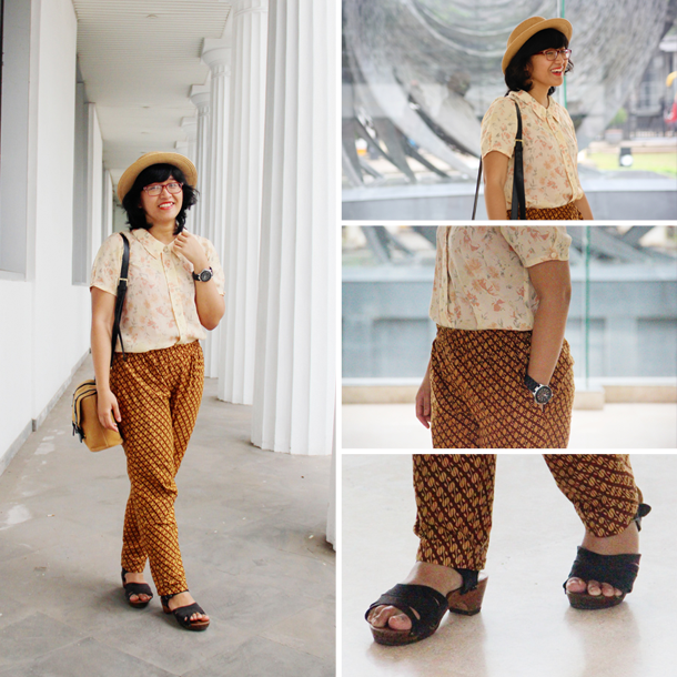 Floral top via fleaubergine // tailor-made batik pants // Urban Outfitters hat // Ebay purse (Sis’s) // thrifted sandals // photos of me by Divina + Tasha