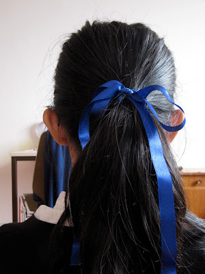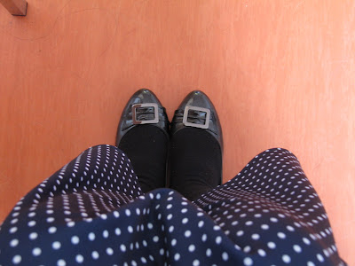 First off, I match the skirt with my colonial-styled shirt, layered with a simple black cardigan. The skirt is actually a little loose so I tightened it up with a belt. The belt gives a little southern touch to it what with the horse and all. Now, the hair is simply ponytailed with a ribbon to make it more interesting. It’s snowing today by the way. Loving it very much!