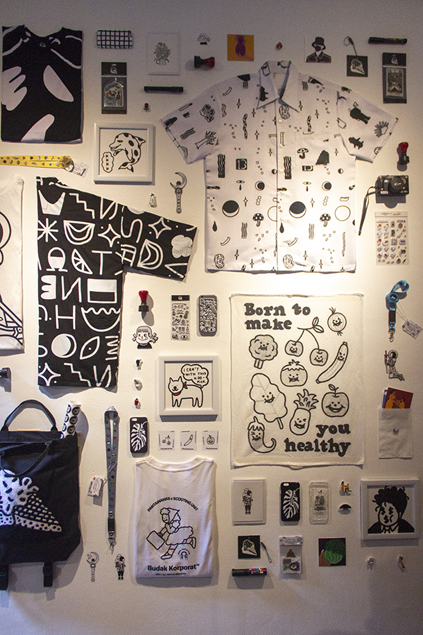 Outside in the courtyard, you will finally arrive at the art market, where a number of people sell their work, including merchandise, prints, clothes and food. There are some names I recognise, such as Sukkha Citta, Koola Stuffa, Bernadet Putri—she remembered me!—and Loredanzo.