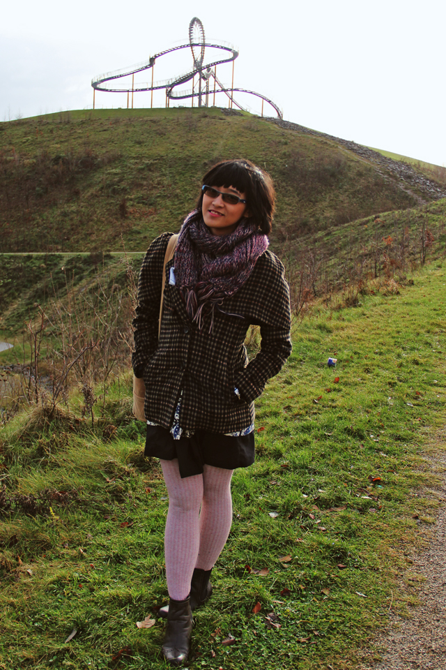 Notice anything different, fellas? Hell yeah! I’ve finally met with my dream camera. I present to you my first DSLR camera, Prixma. Yes, I name my electronic devices, such as my laptop Éclaire and pen tablet Pablo. Firu and I were so excited to try out this baby that we went out to one of Duisburg’s latest landmarks. It was built only last year. It’s part of the Landmarken der Metropole Ruhr project, which has a total of 19 landmarks built all around the industrial region (Ruhrgebiet). This one caught my eye since I saw it on the net because it has the structure of a roller coaster, minus the cars. It is located on a hill so it was pretty cold and windy when we went to see it. This is an industrial sculpture, by the way. Too bad there’s no awesome view from up here save from the factories all around.