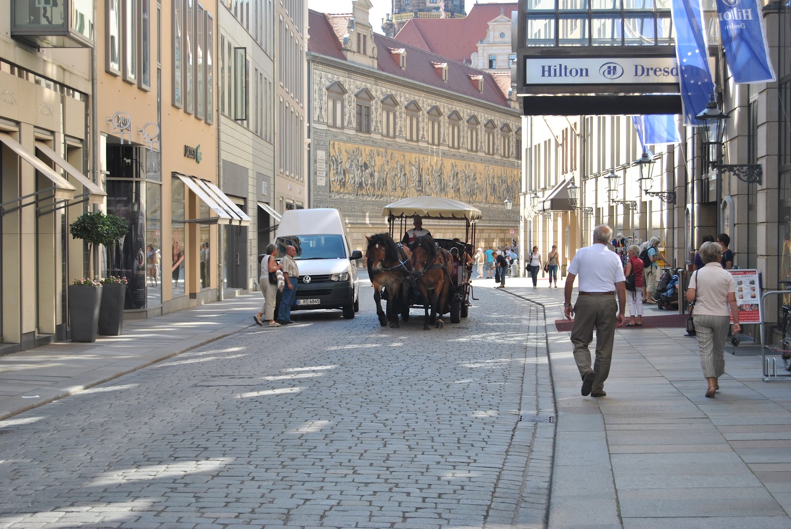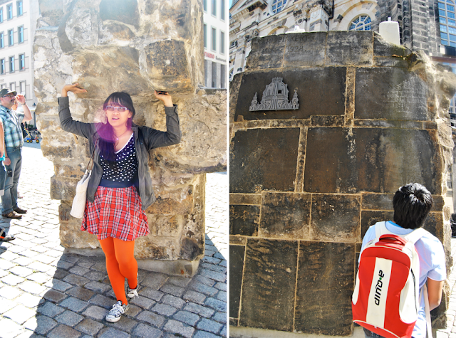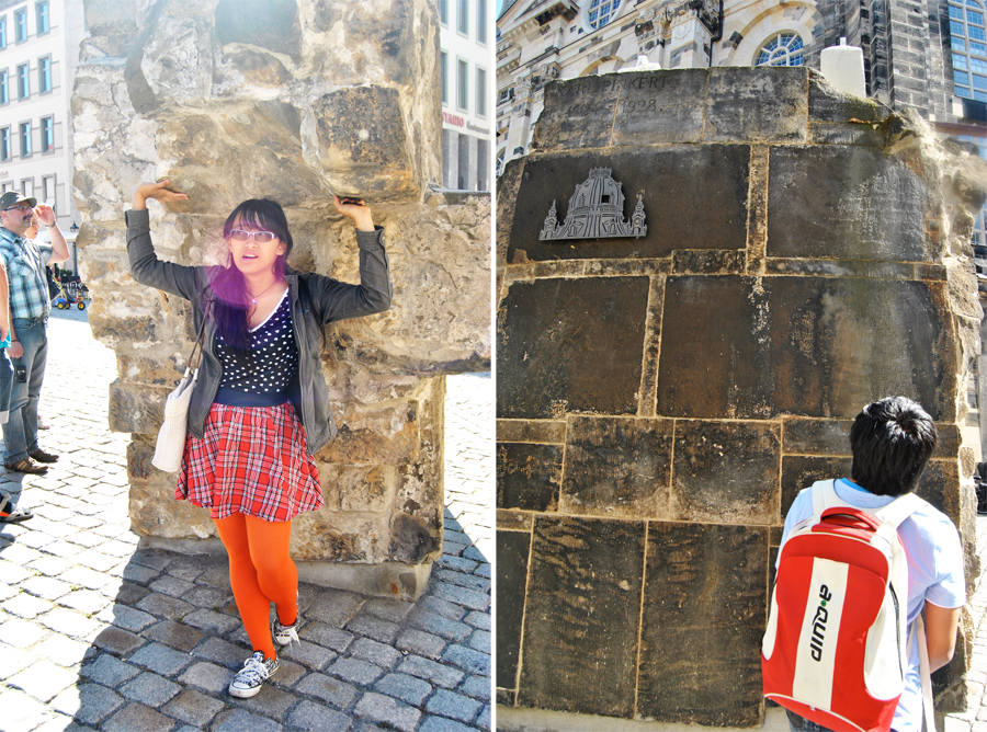 While Berlin offers possibilities, Dresden offers authenticity. Before we went here last semester, my history teacher told us that Dresden is divided into Neustadt (=new city) and Altstadt (=old city). Neustadt contains the modern and urban part of the town whilst Altstadt contains the more antique and preserved part of it. We departed from Halle at 1.11 PM because Dresden is located closer to Halle than Berlin is — although only by a few minutes by train. We arrived there pushing close to 4.30 PM and hopped on a tram because we didn’t know how to get to anywhere from the train station. We snatched a map of the city and tram line and figured out how to get downtown. The first sight we saw was the Frauenkirche (Church of Our Lady) and from there we just went ahead, tracing the steps I took before. A little something about the Frauenkirche: it was once blown up into smithereens by the Americans in the second World War and was rebuilt afterwards. You can see the original bricks on the picture above — the black ones.